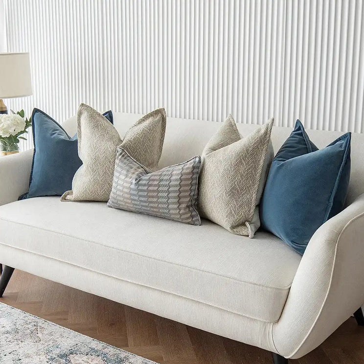 Velvet & Silver-blue Zigzag Curve Cushions