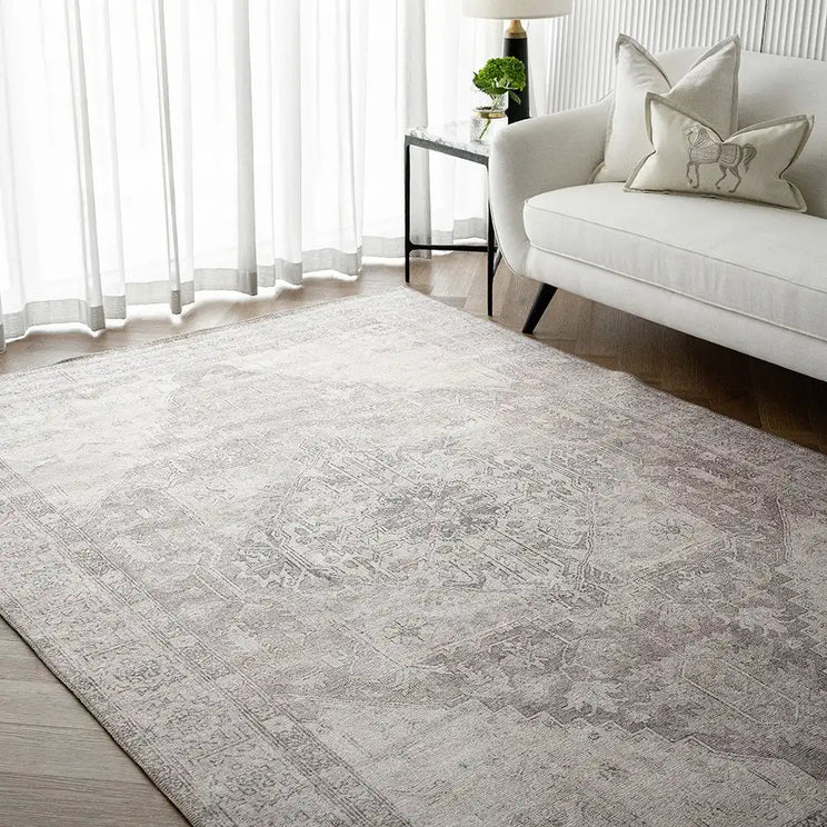 Our Vince Clay carpet comes in faded shades of beige and grey to suggest the colours of an old black-and-white photograph. This vintage-style rug is an elegant option for any interior.