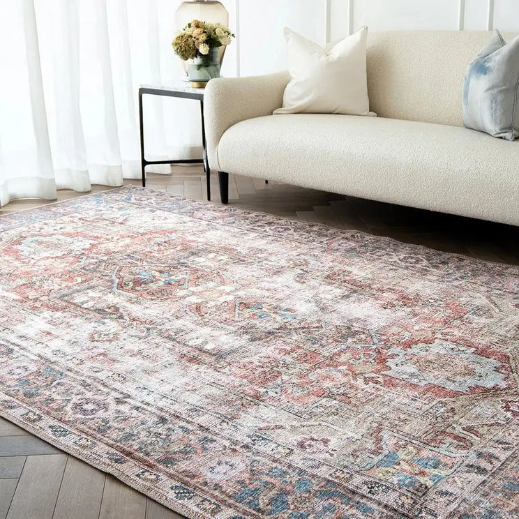 Made from modern fibres, this faded rug is a classic design, updated for contemporary homes