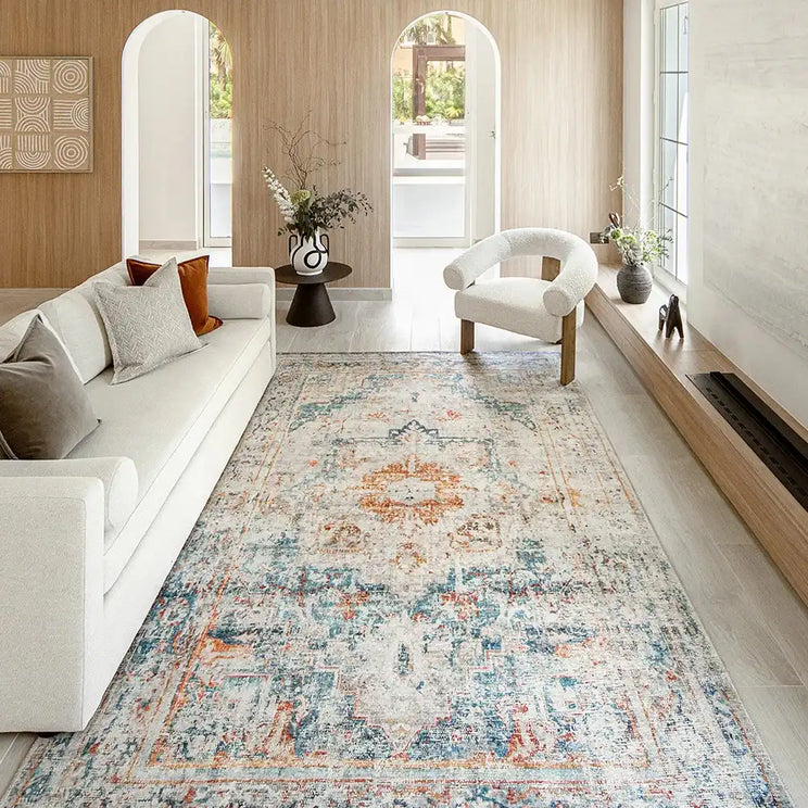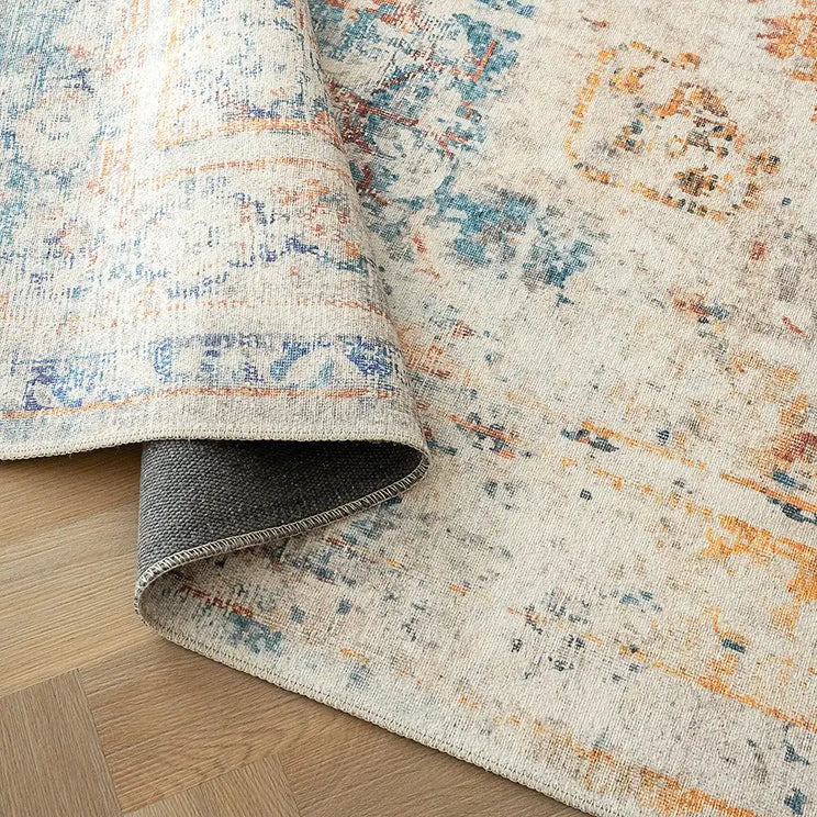 Add a little vintage flair to your home with this faded carpet. Featuring an intricate medallion pattern with blue and orange highlights, this traditional carpet is an easy way to upgrade your interior.