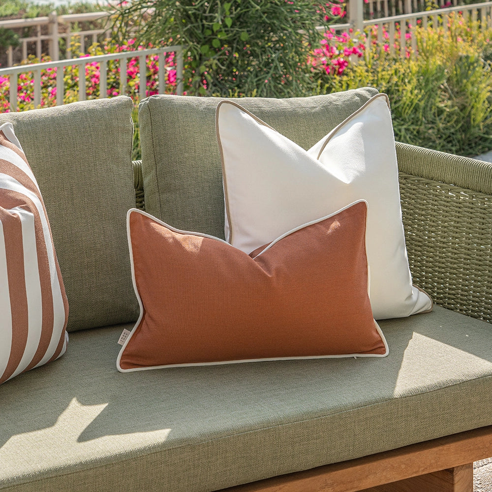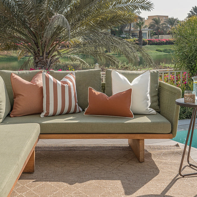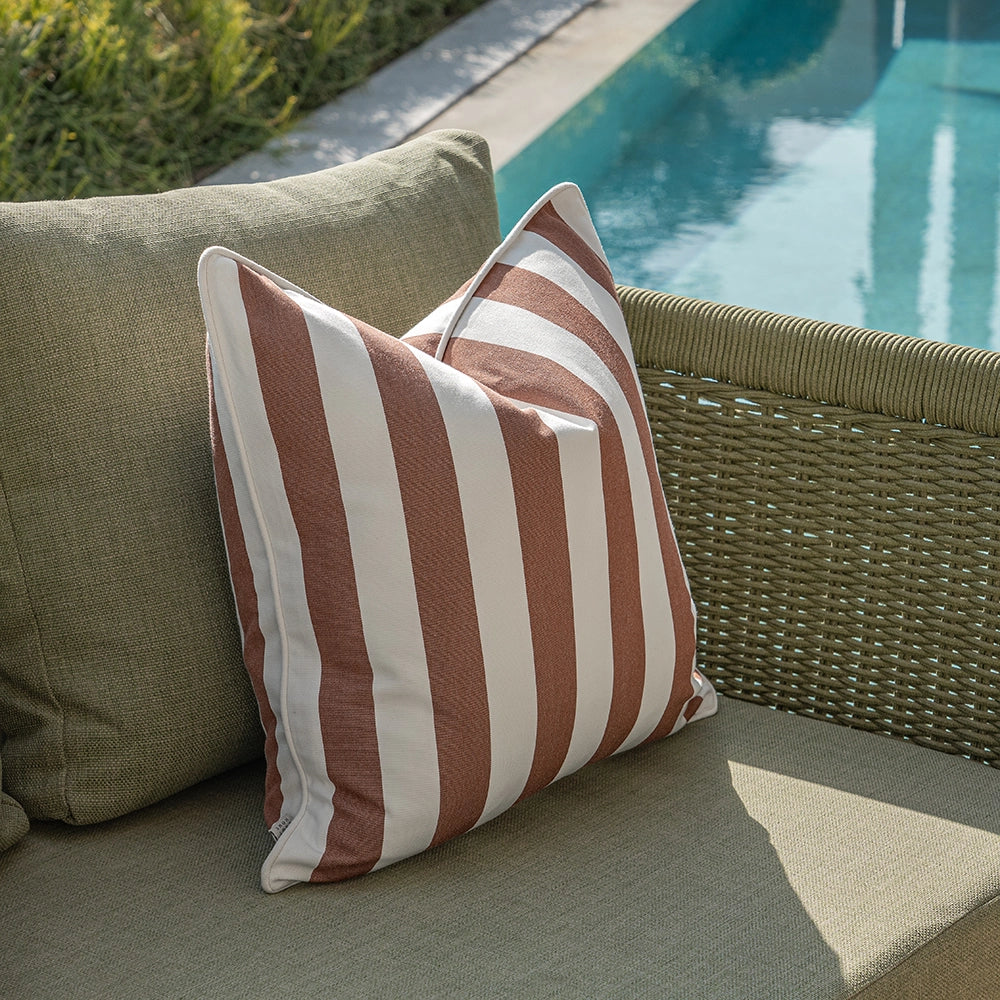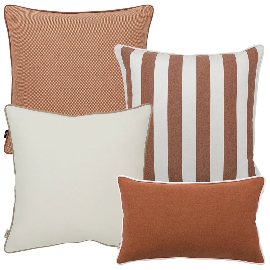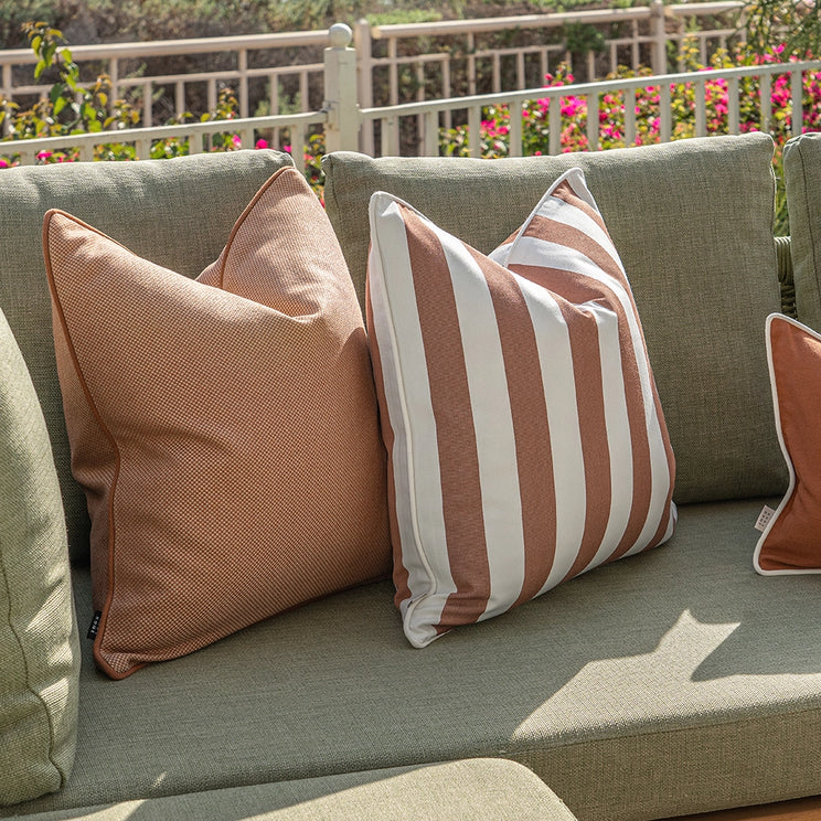 Conjure up a warm, sunny aesthetic with this rust and terracotta cushion set. The four-piece bundle includes a mix of plain and striped cushions to give your outdoor seating a new lease of life.