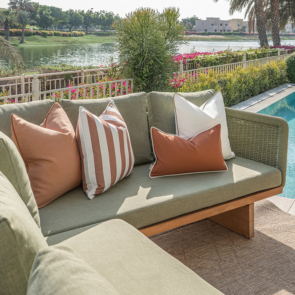 Weather-resistant, fibre-filled cushions for comfort that elevates any outdoor space