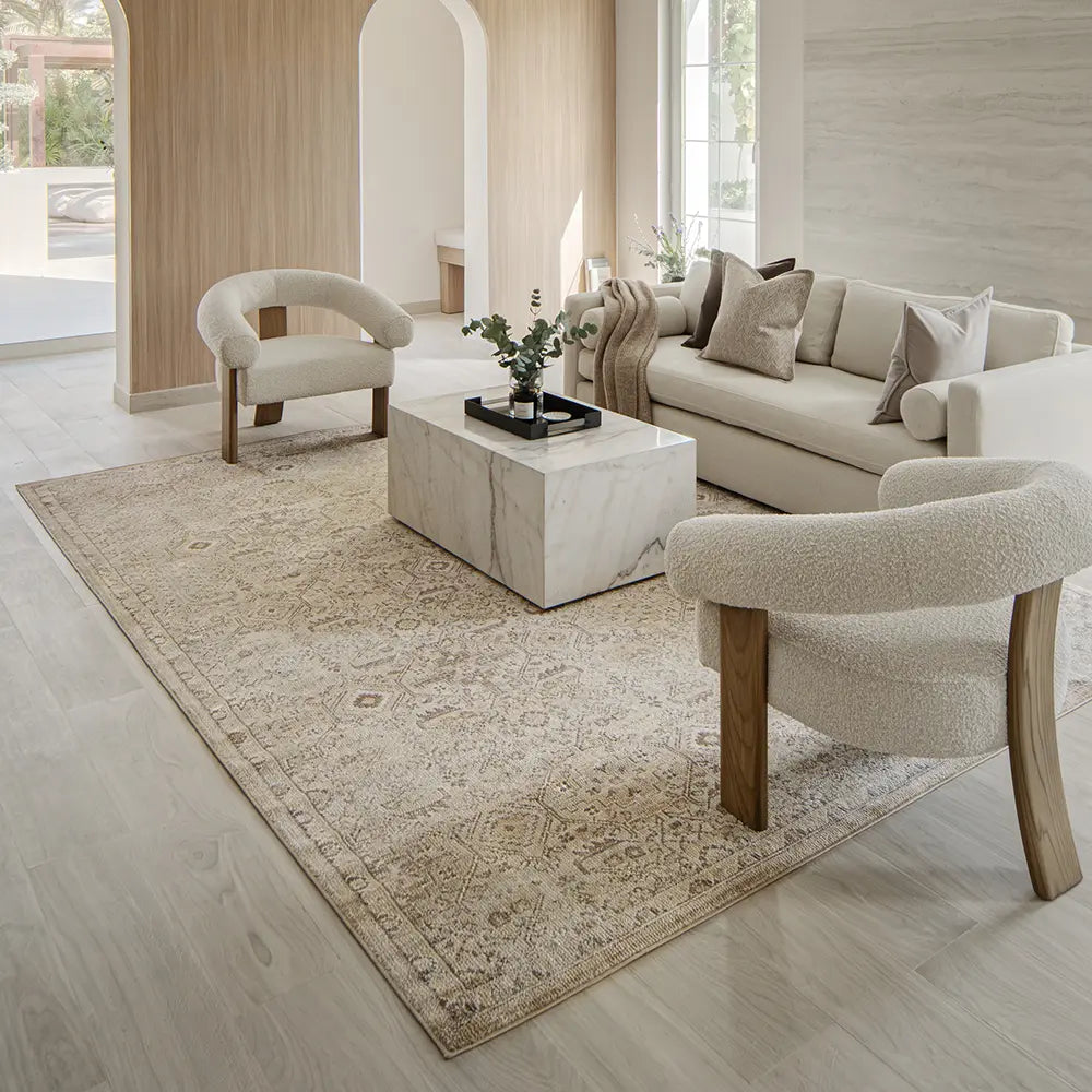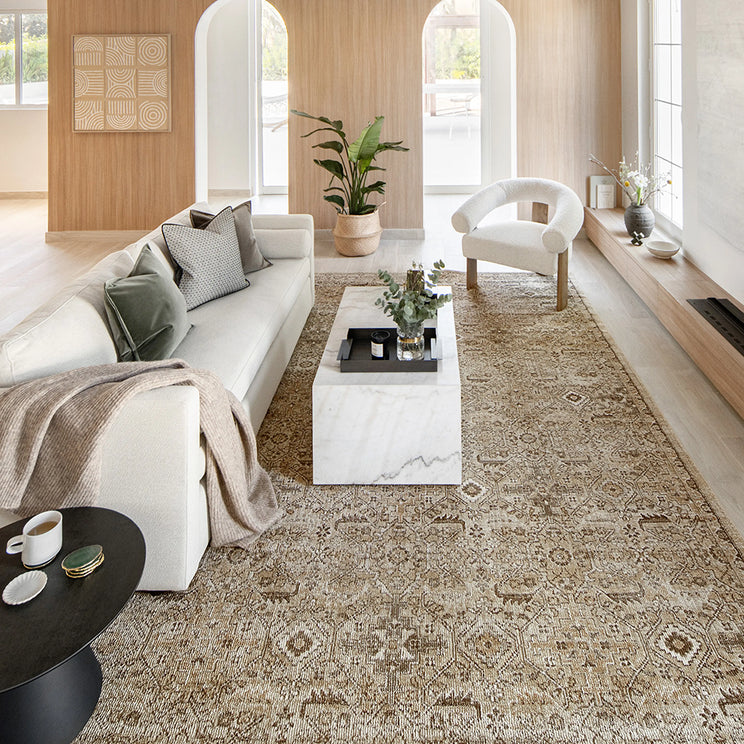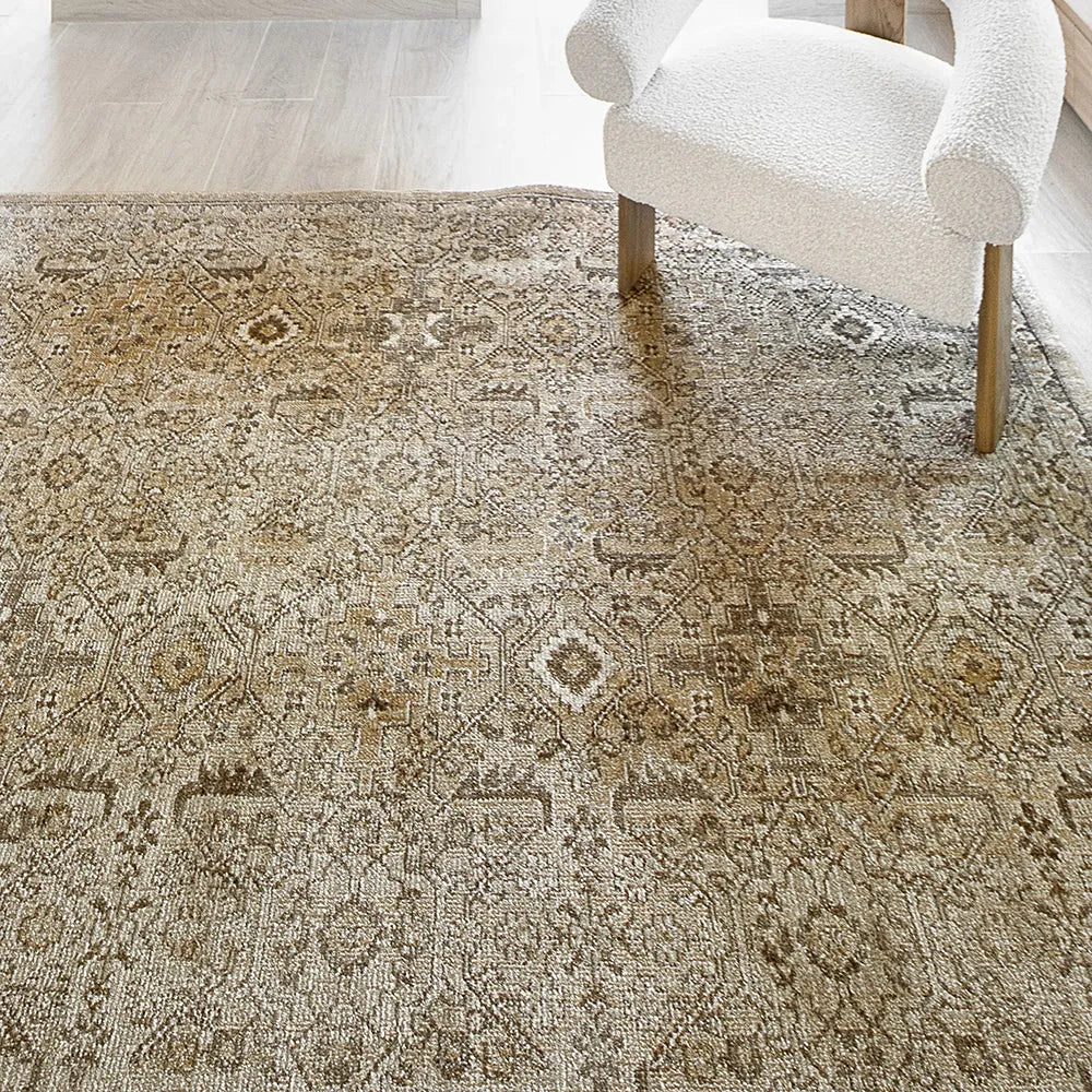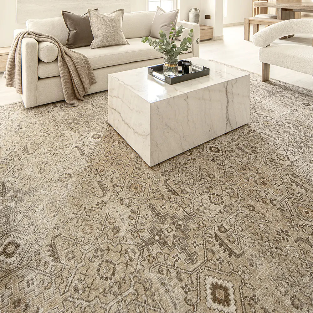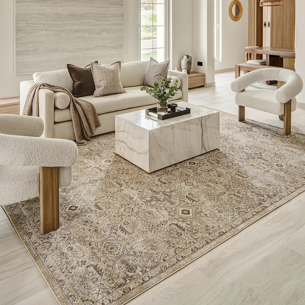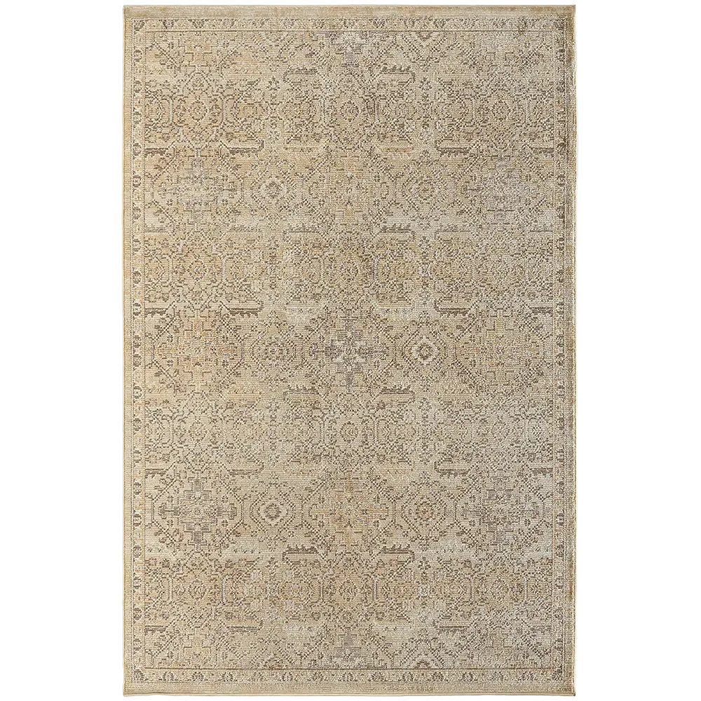 This vintage style carpet has a timeless quality you'll love. In a warm combination of golden brown and beige with fringing at each end, the patterned carpet will make any room feel more welcoming.