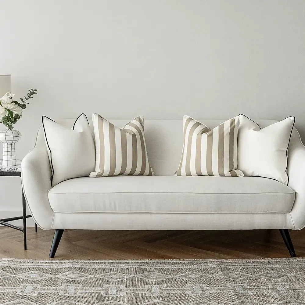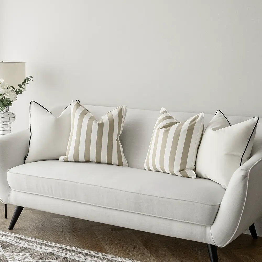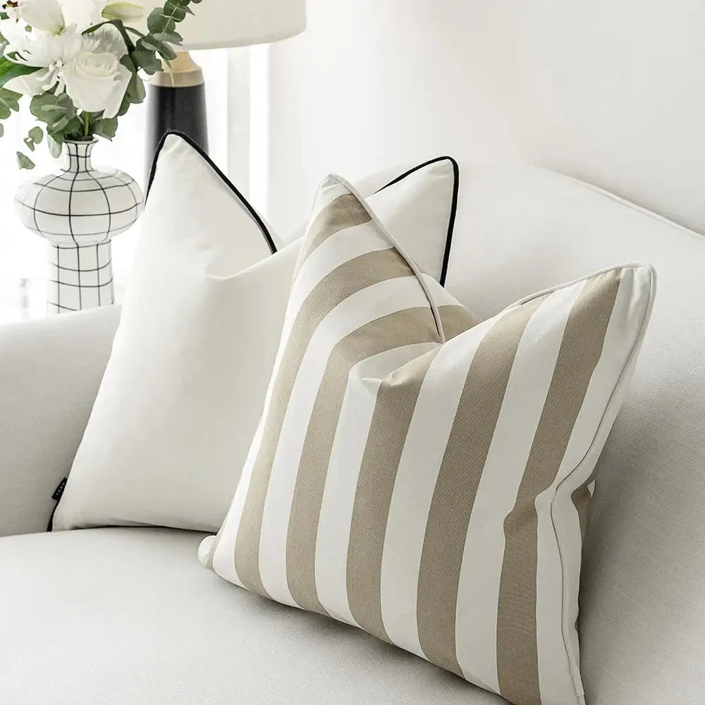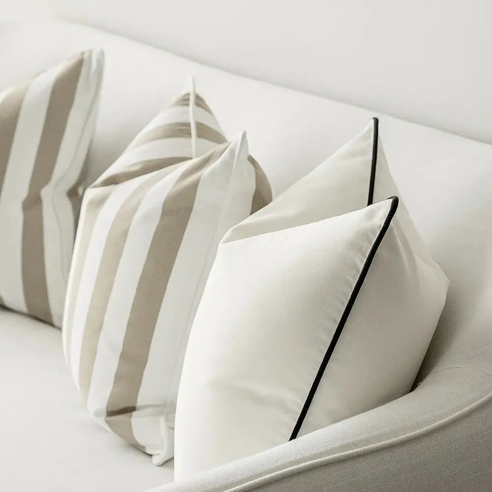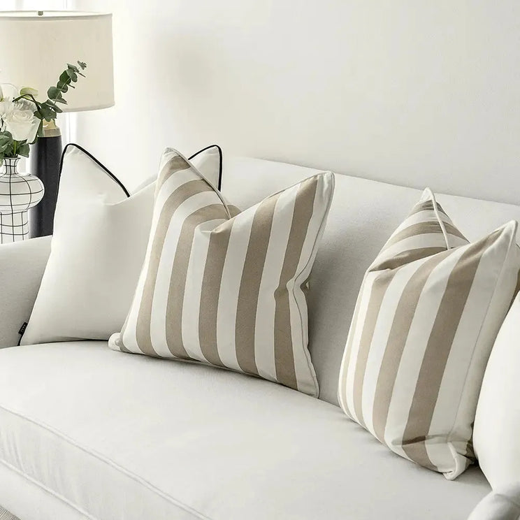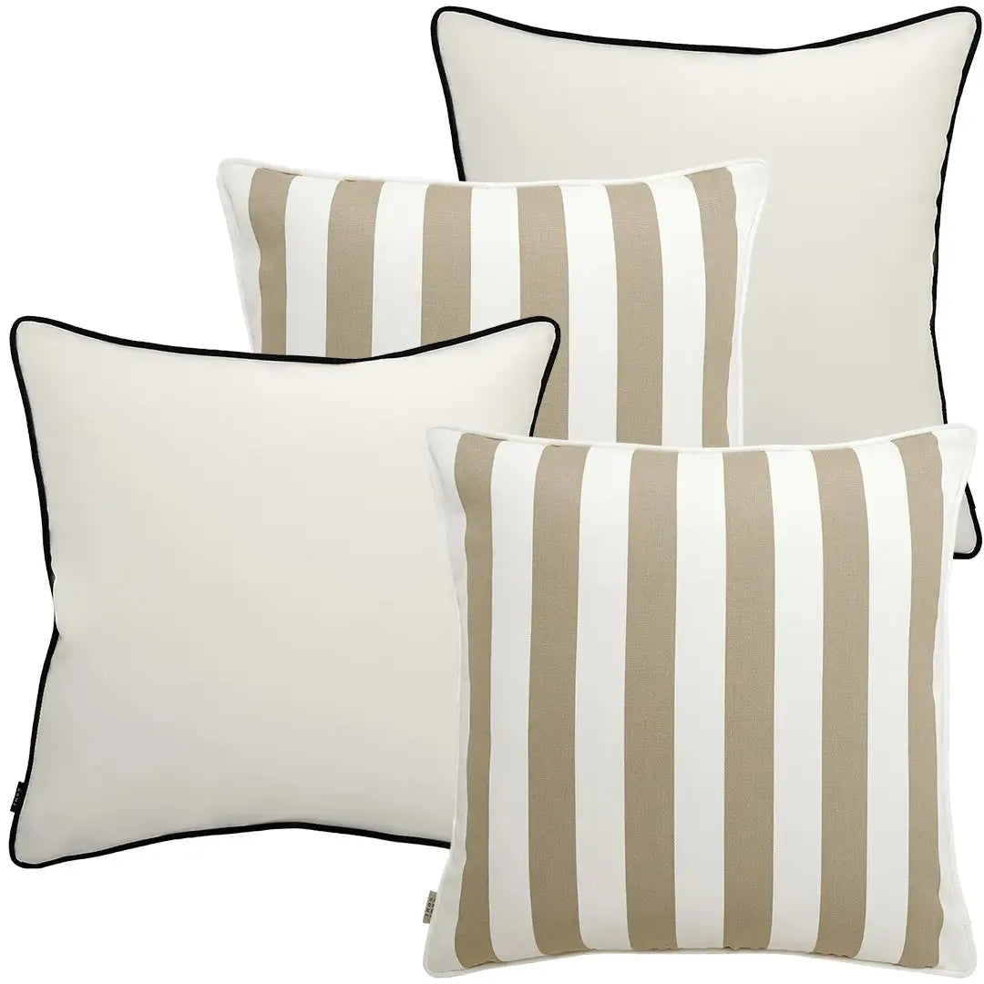 Dreaming of sandy beaches? This outdoor cushion bundle brings the coast to your patio. We've teamed two plain cushions with two white and beige striped cushions to create a stylish set for your outside space.