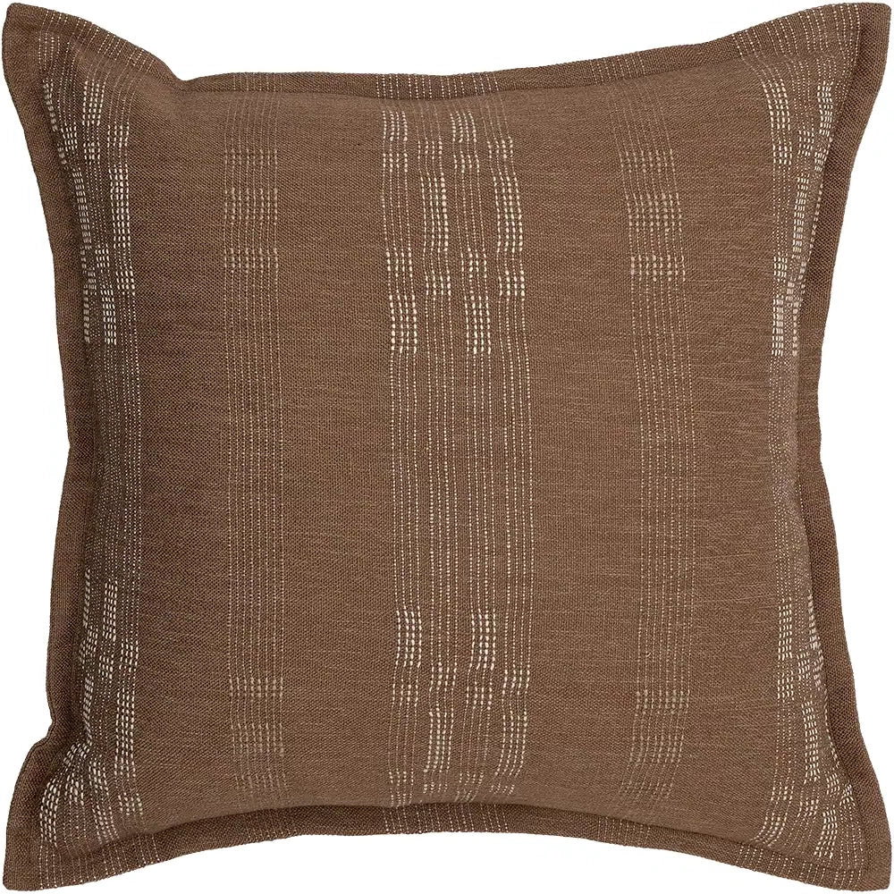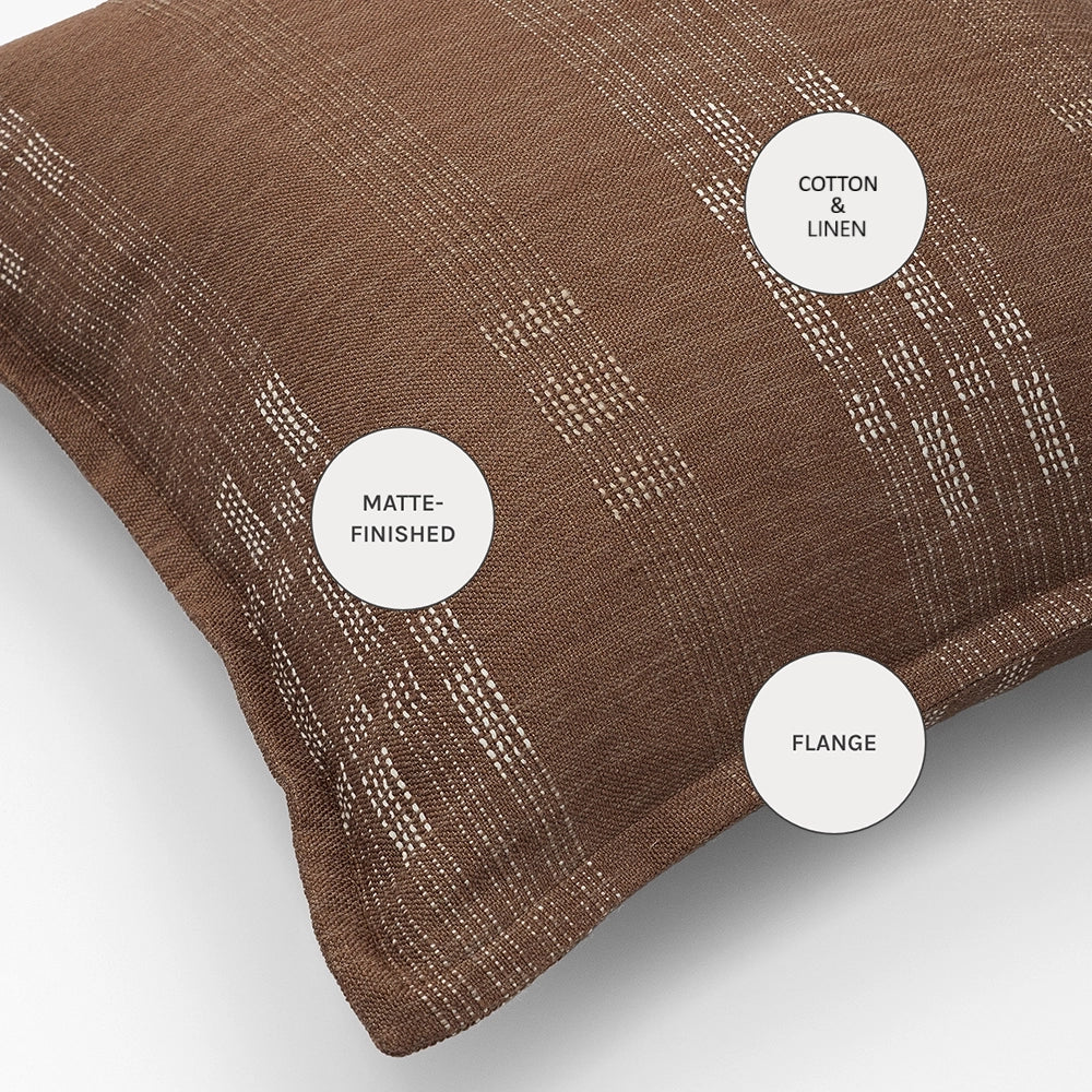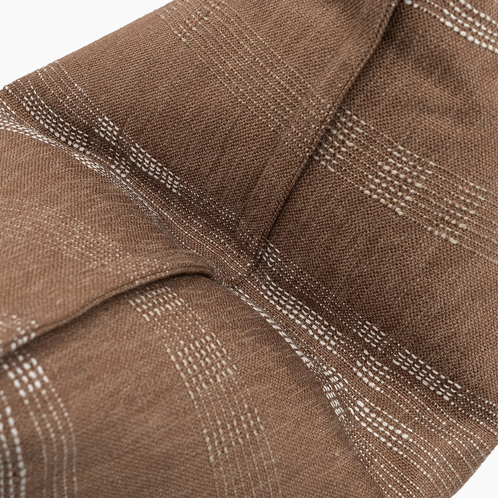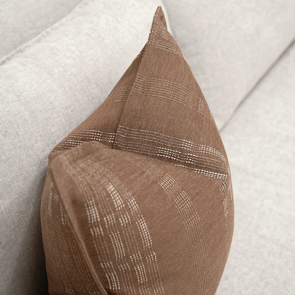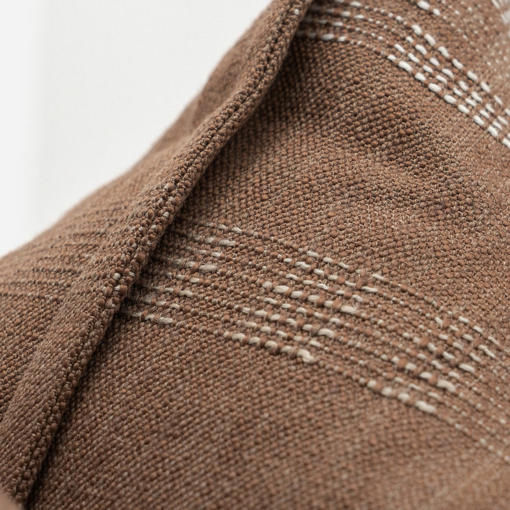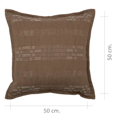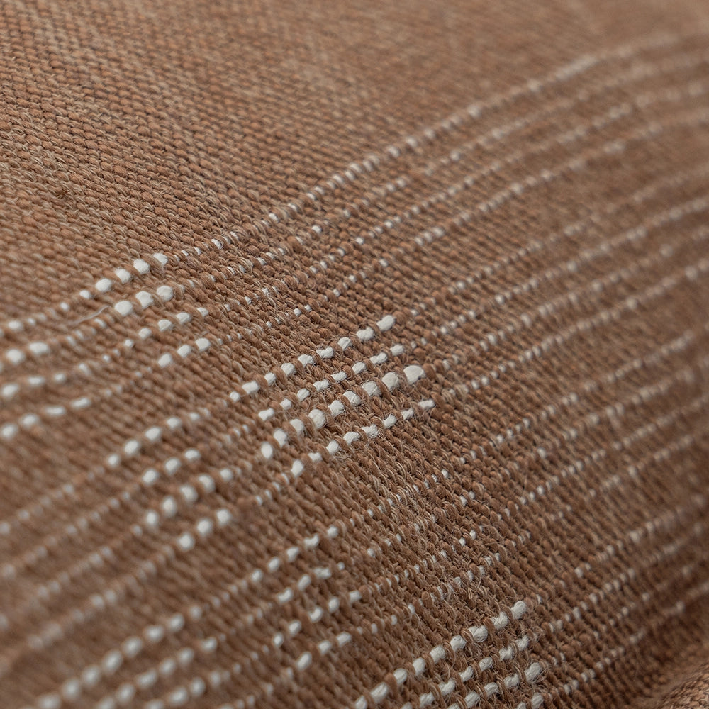 Warm colours meet natural fibres in this narrow stripe cushion. This brown cushion features bands of dotted lines all the way across to make a lively addition to your living room décor.