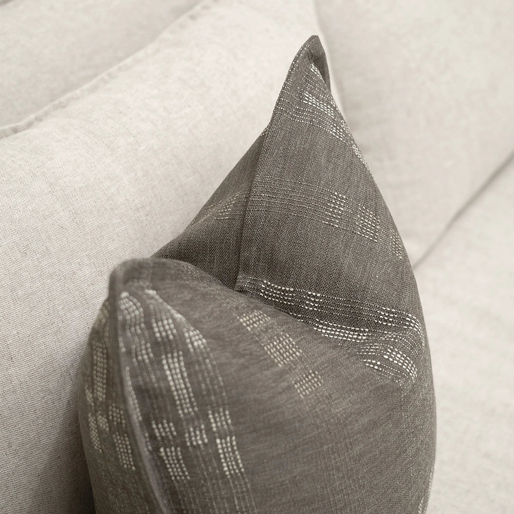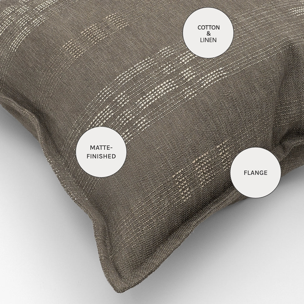 This neutral cushion has plenty of personality. The taupe cushion features irregular dotted lines in cream and beige to create a sense of movement that will bring your sofa to life.