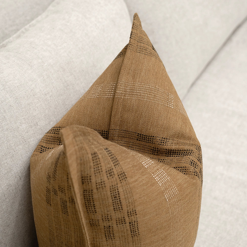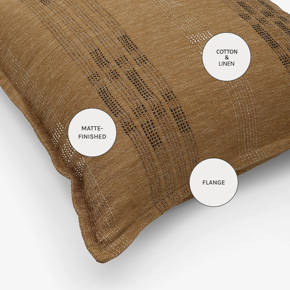 Contrast dotted lines dance across this mustard cushion to create a lively display. Made from linen and cotton, this textured cushion delivers modern style and cool comfort all year round.