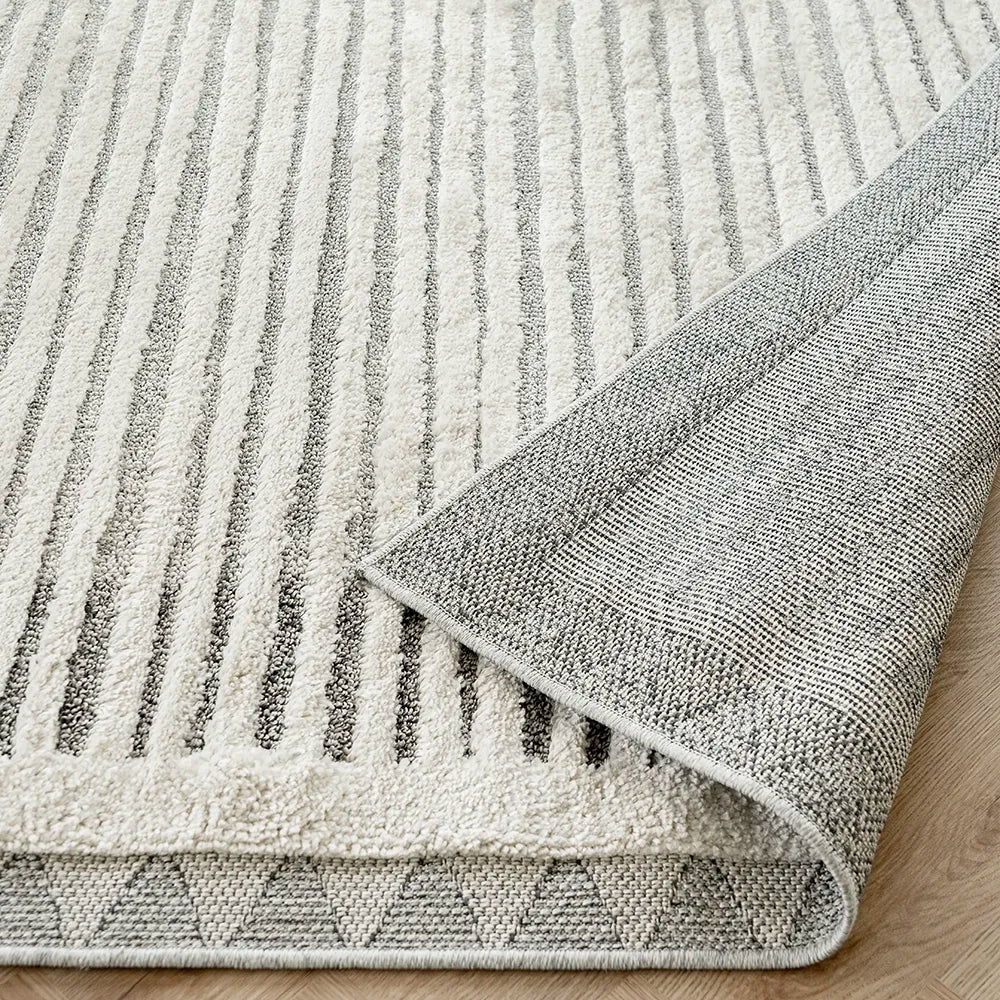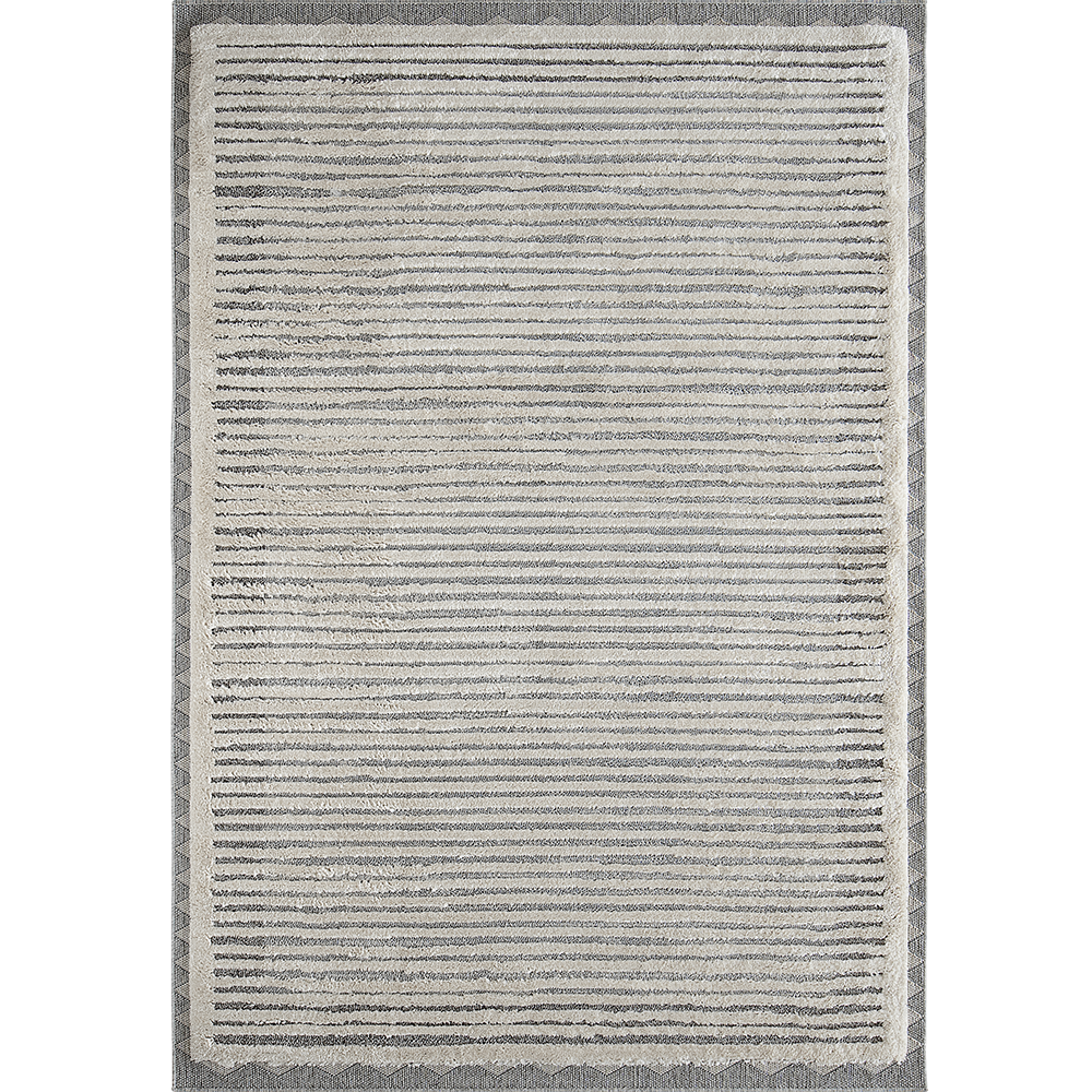 This grey and ivory rug is made from synthetic fibres to make a durable, practical option.