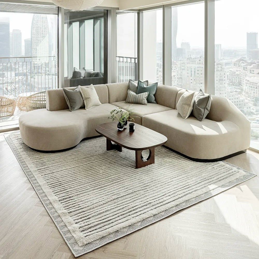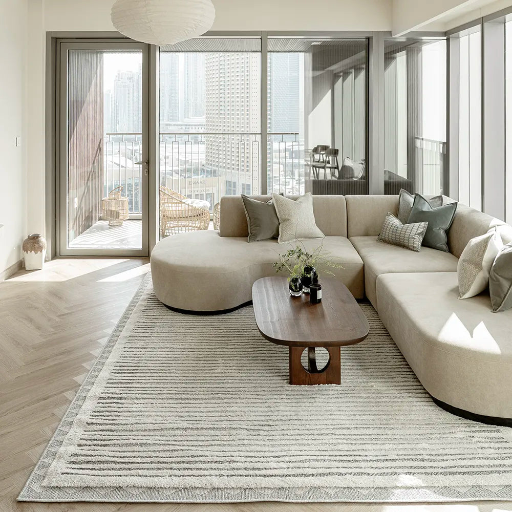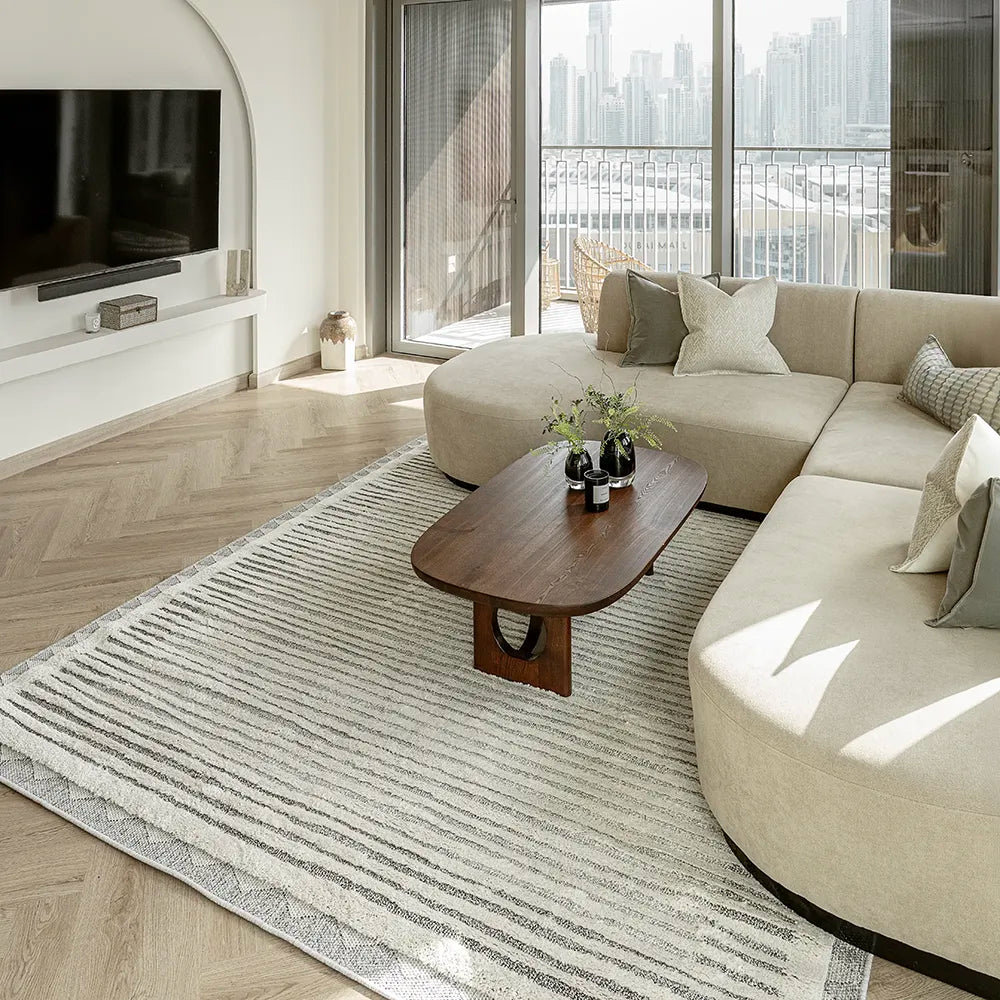 In a joyful mix of textures, our Zahra Alba carpet will lend a bohemian feel to your home.