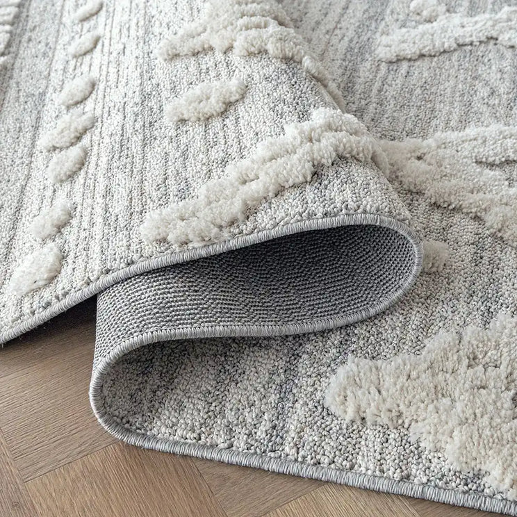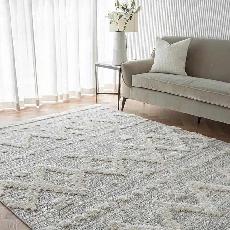 This grey and taupe rug is made from synthetic fibres to make a durable, practical option.