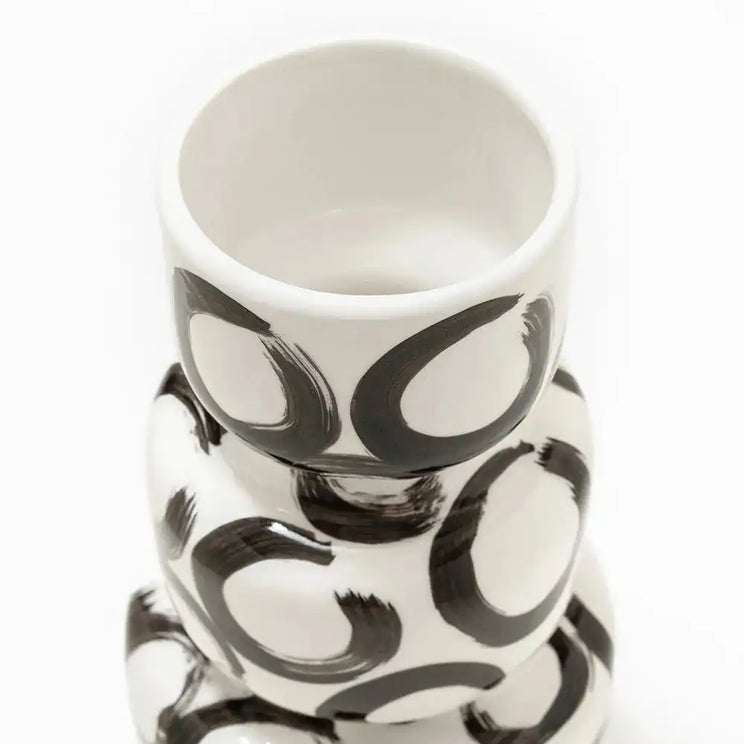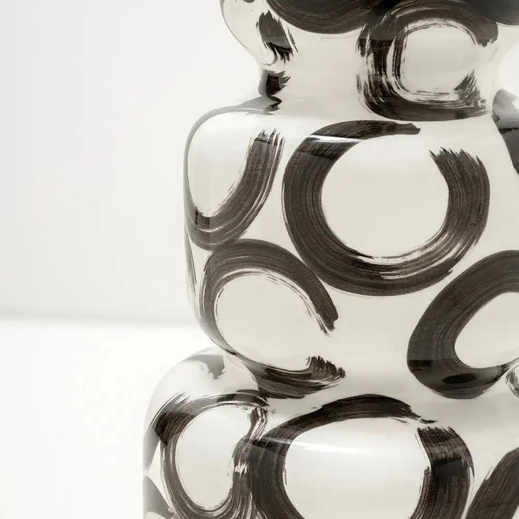 Design: Ceramic vase with a stacked silhouette and ink circles