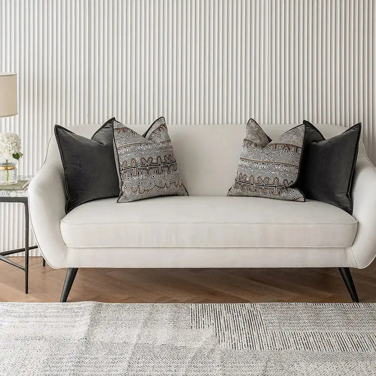 In black, beige and orange, this modern cushion bundle will punch up a minimalist interior. We've teamed two dark grey velvet cushions with two tribal pattern cushions that have velvet backs to match.