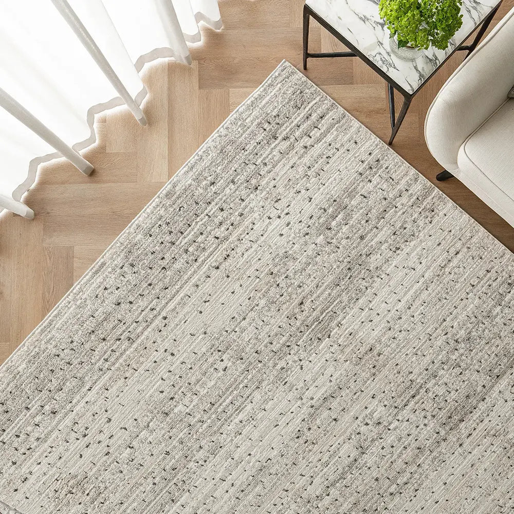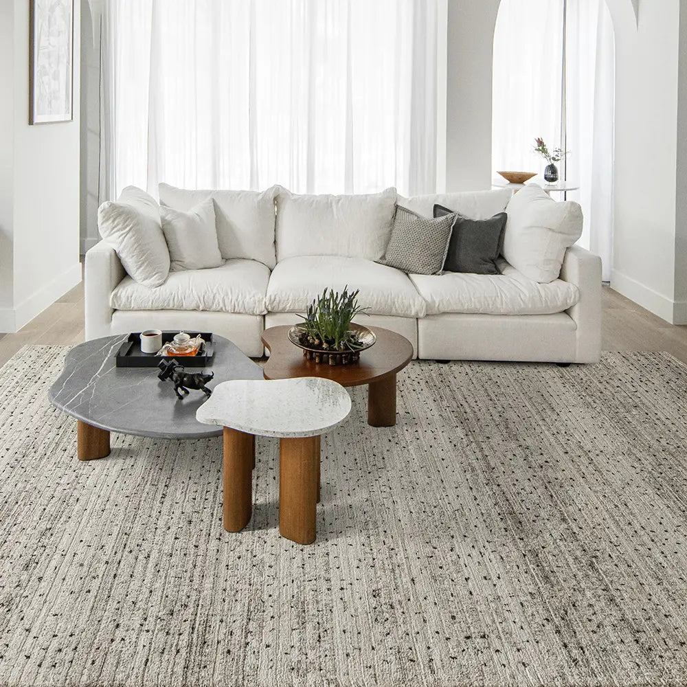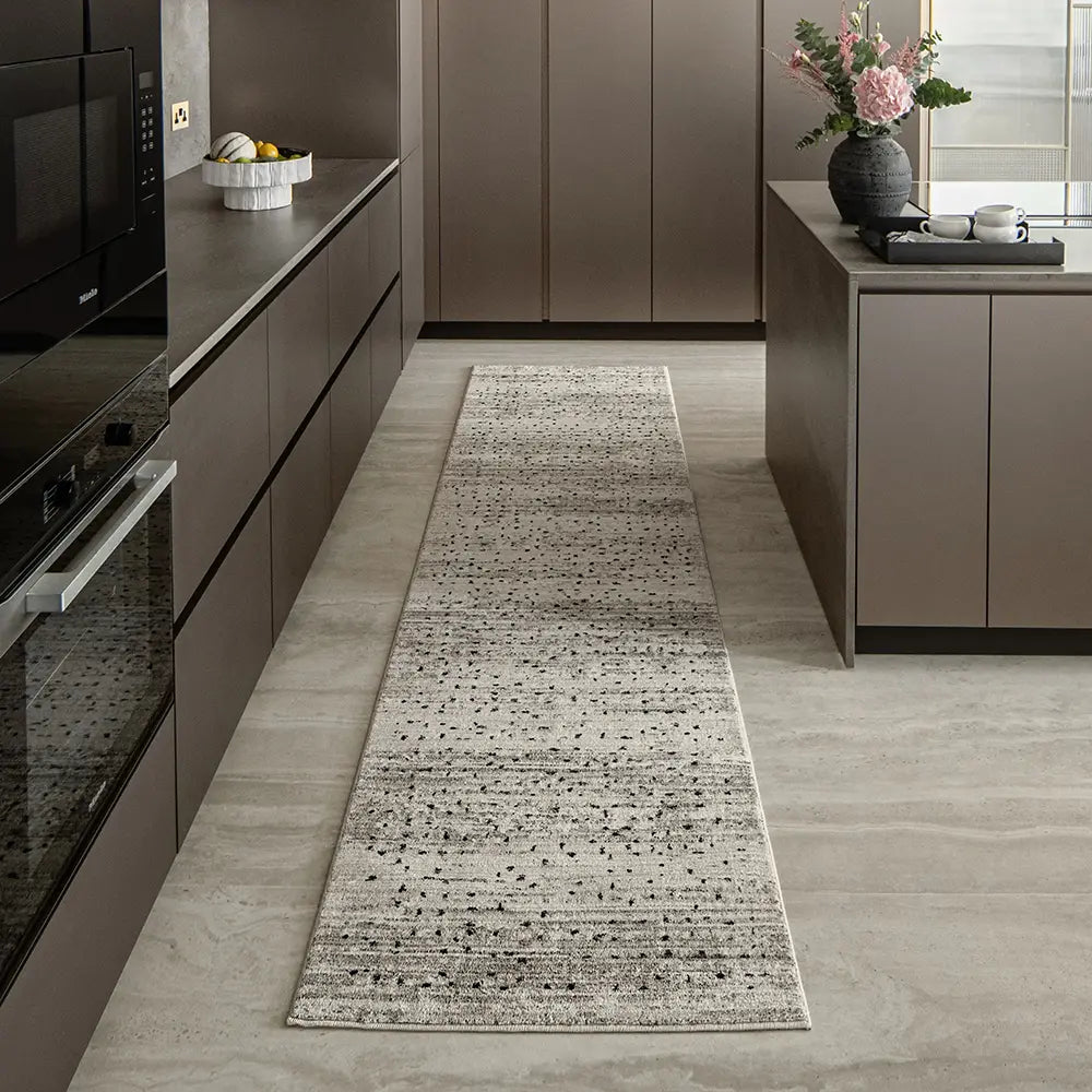 A gentle colour palette gives this beige and black carpet a sense of zen.