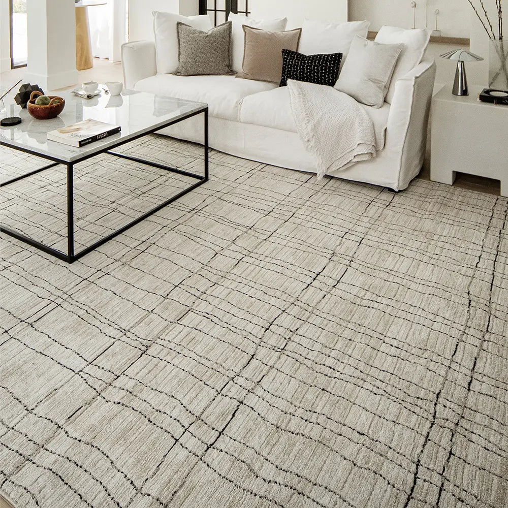 A gentle colour palette gives this grey and beige carpet a sense of zen.