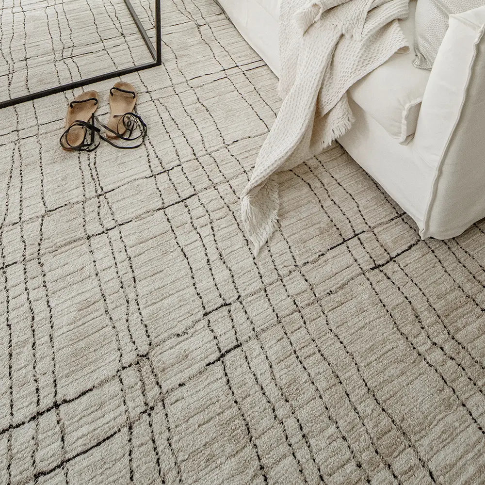 With a wavy pattern in neutral tones, this modern rug will transform your living space into an oasis of calm.