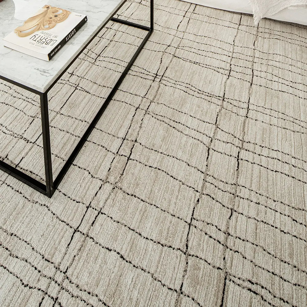 A gentle colour palette gives this grey and beige carpet a sense of zen.