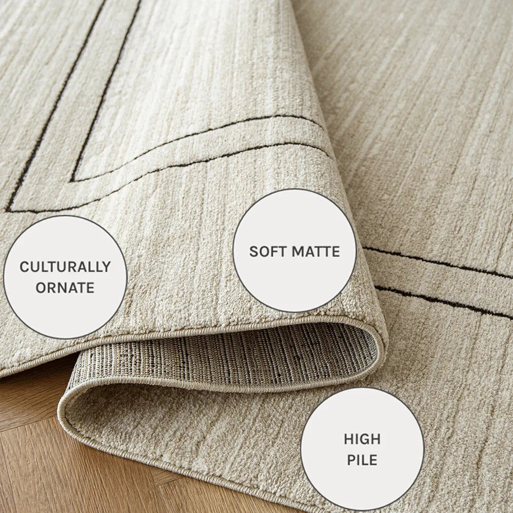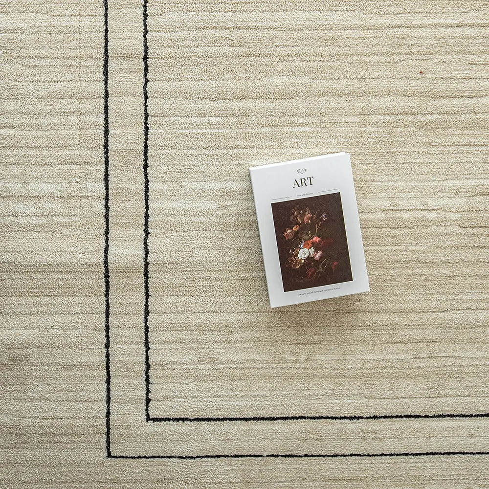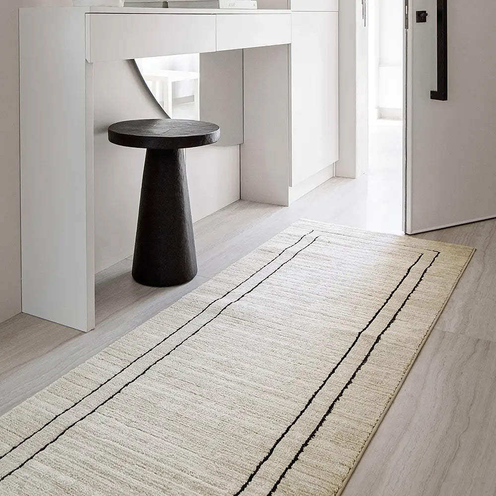 A gentle colour palette gives this beige and black carpet a sense of zen.