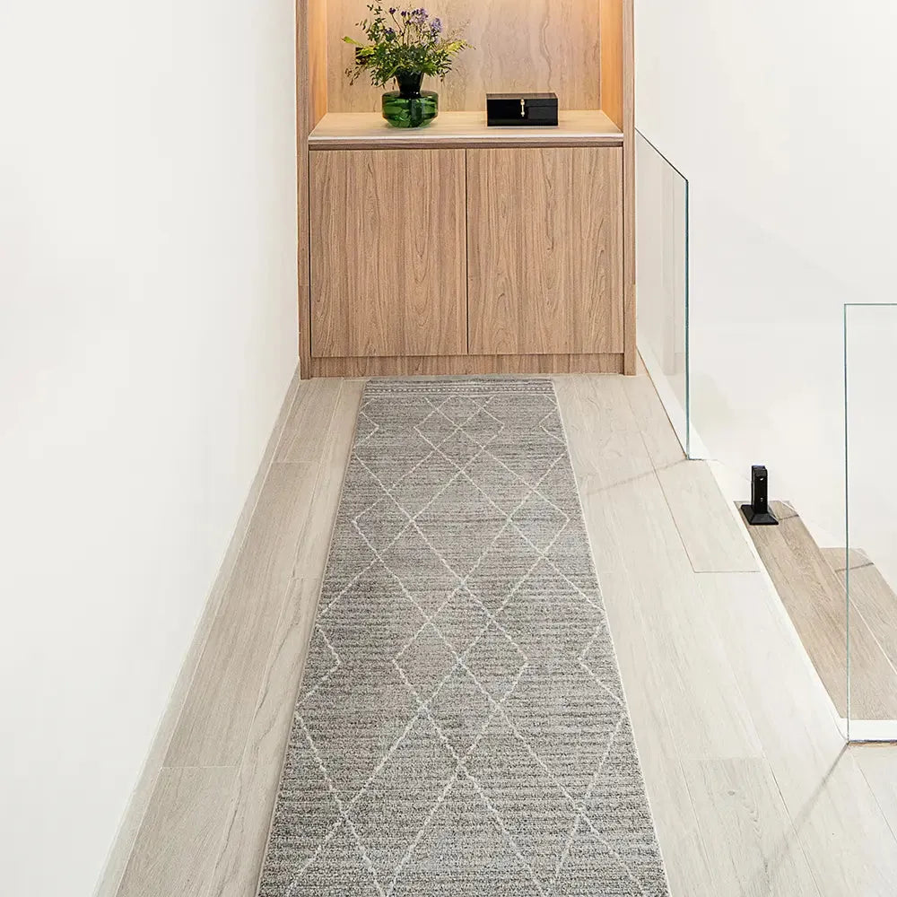 Define a chill-out zone in your home with this grey and cream carpet. Our Zen Dune carpet features narrow lines zigzagging across a striped base to create a chic diamond pattern.