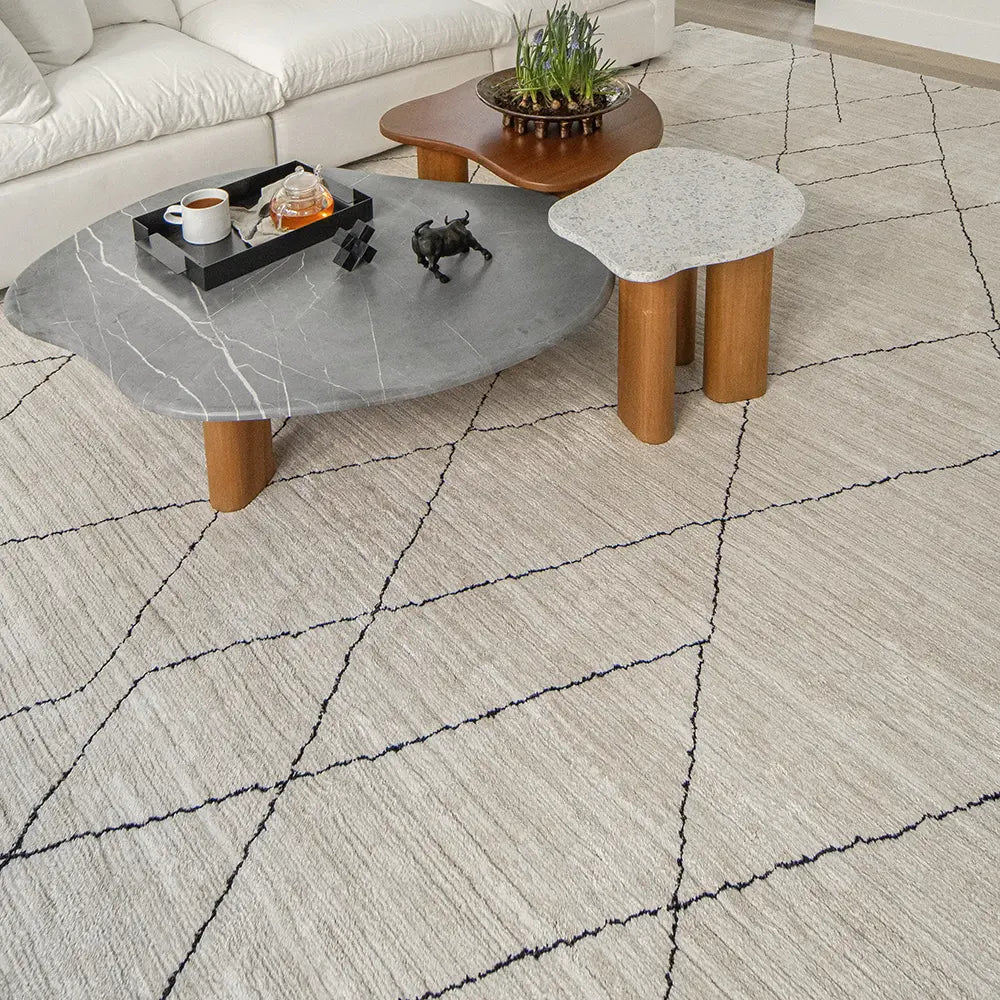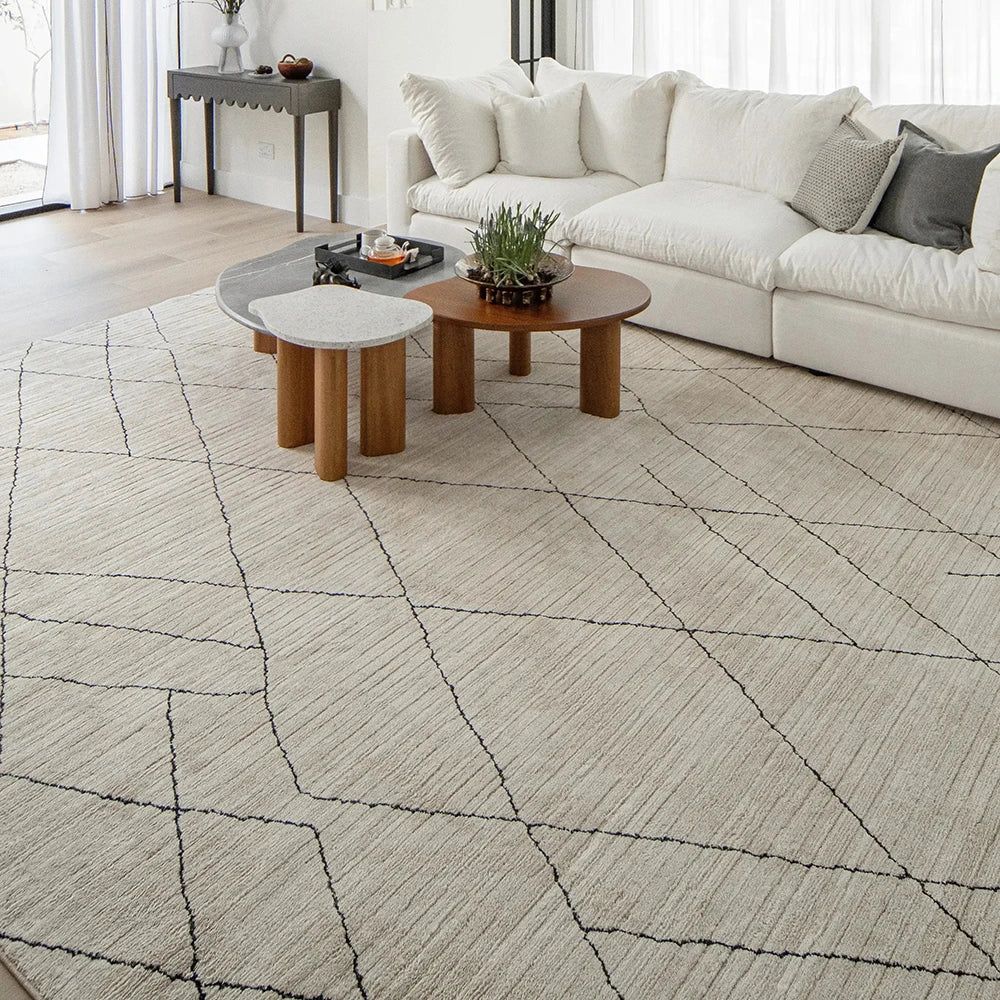 This contemporary rug pairs a neutral colour palette with a hand-drawn effect to create a calming aesthetic.