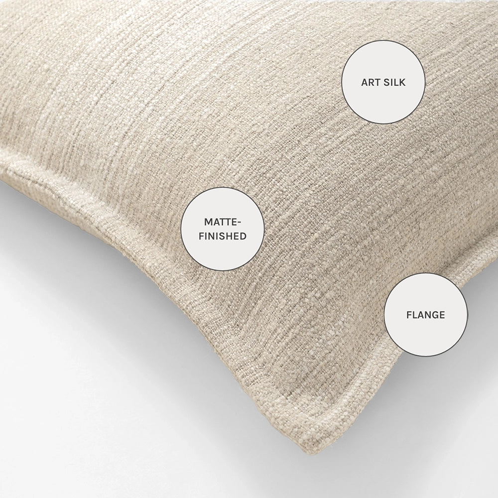 Take a neutral interior up a notch with this luxury cushion. Made from smooth art silk, this beige cushion features very subtle stripes for texture with a light touch – a versatile pick for any sofa.